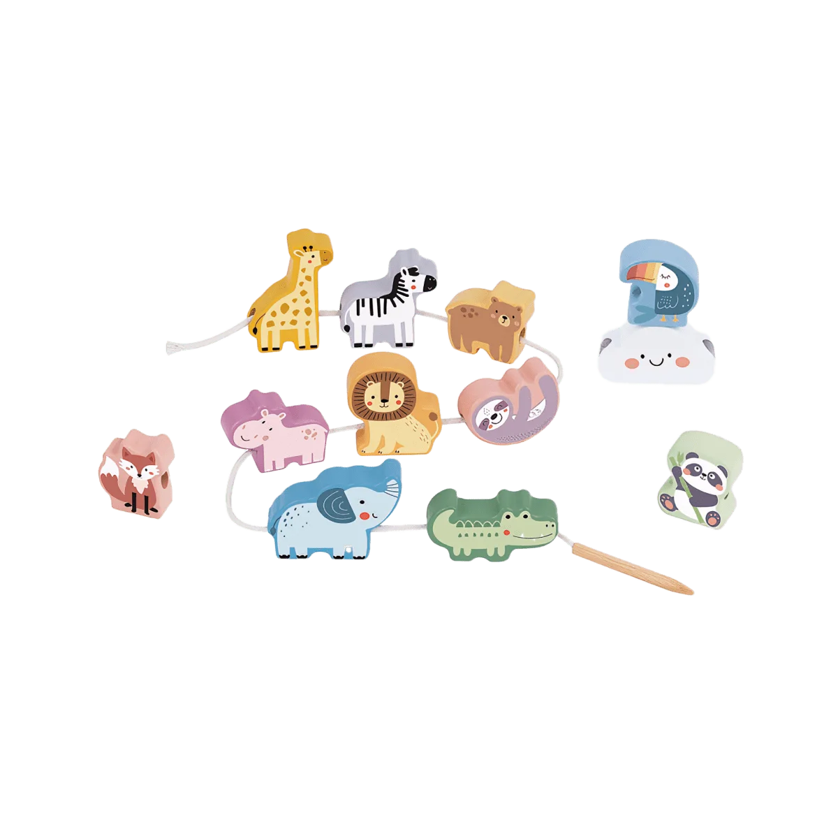Introduce your little one to the fascinating world of animals and fine motor fun with the Lacing Animals Set! Designed for tiny hands and big imaginations, this beautifully crafted set of wooden animal toys offers hours of interactive play. Each colorful animal, from the friendly giraffe to the curious crocodile, can be threaded onto a sturdy string, helping children explore coordination, concentration, and creativity. Made from eco-friendly, sustainable woods and safe paints, the Lacing Animals Set combines safety with endless fun, allowing parents to feel confident in their child’s playtime.